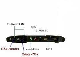 Systemvoraussetzungen: - DSL-Router oder -Modem mit Internetanschluss Anschließen: - Verbinden Sie den WAN-Anschluss (links) mit Ihrem DSL-Router - Verbinden Sie den LAN-Anschluss mit Ihrem Gästenetzwerk Verwalten: - LAN: Verbinden mit einem Internetbrowser über http://192.168.192.1 - Benutzername: admin Kennwort: (auf Anfrage)